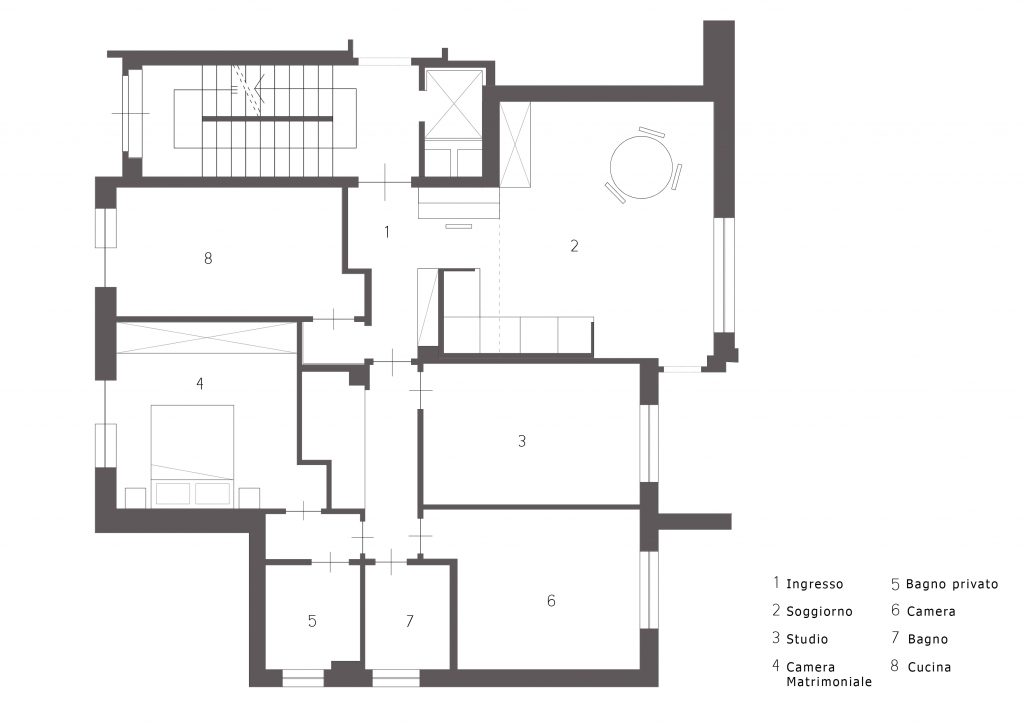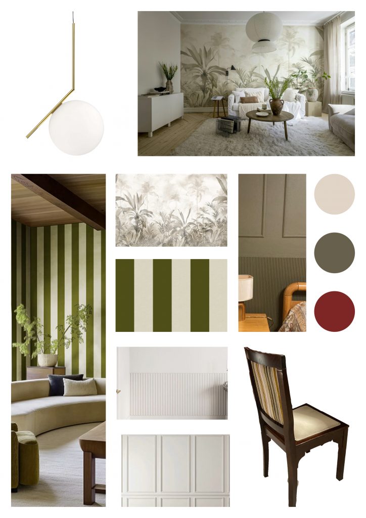 L’appartamento si apre su un’ingresso delimitato dal color verde che conduce alle diverse stanze: due camere da letto oltre al colore si è usato una finta boiserie, due bagni, uno studio, la cucina e il soggiorno. Ogni ambiente è caratterizzato da una palette cromatica armoniosa e coordinata, che contribuisce a creare un senso di continuità e fluidità in tutto lo spazio abitativo.